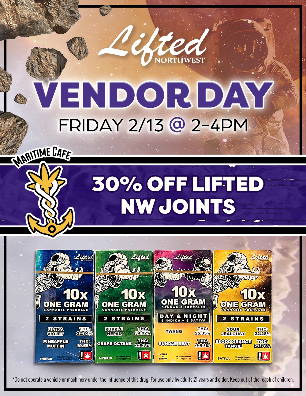 Happy Cabbage is rolling through Maritime Cafe for Vendor Day! Join us Saturday, February 21st from 3–5 PM and enjoy 20% off Happy Cabbage products, including cartridges, gummies, and concentrates. Come meet the vendor, explore their lineup, and snag some SWAG during the event while supplies last. A perfect weekend stop with good vibes all around. Don’t miss it! 🌿